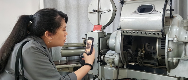 台北市影音节目制作商业同业公会干事黄丹岷认真拍摄山西传媒博物馆藏品