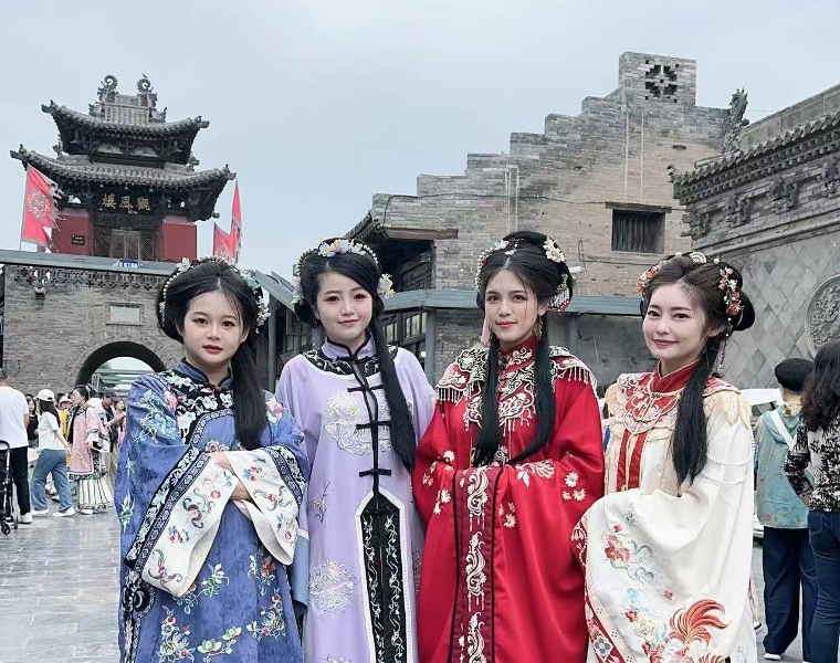 参访团成员在平遥古城换上汉服体验山西古县城文化