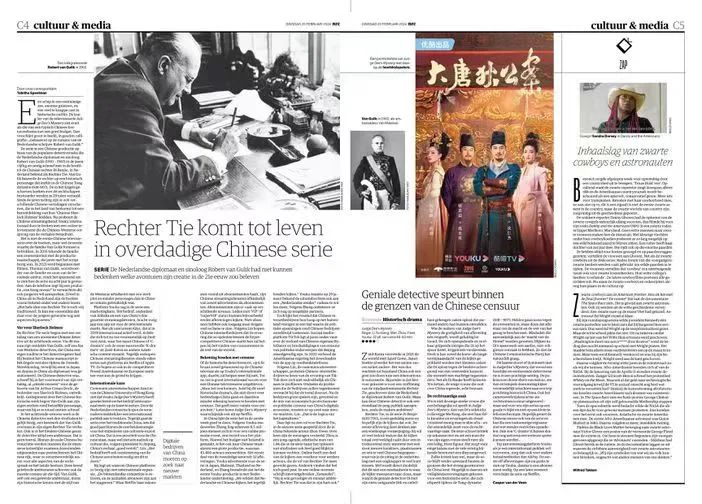 荷兰知名媒体《新鹿特丹商报》近日整版刊发题为《荷兰汉学家创作的大唐狄公立志征服全球》的深度报道,并配发影评,对优酷正在热播的网络剧《大唐狄公案》给予肯定。《新鹿特丹商报》是荷兰最有影响力的日报之一,日均发行量21.8万份,位居荷兰第四。
