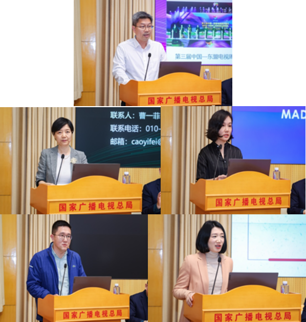 在会员单位代表交流环节,广西壮族自治区广电局副局长陆正宁,中国广播电影电视节目交易中心有限公司总经理助理蔡丹翔,北京市广电局办公室副主任李嘉源,上海哔哩哔哩科技公司执行总编辑张鑫,中国传媒大学戏剧影视学院基础部副系主任刘亭等交流了经验。