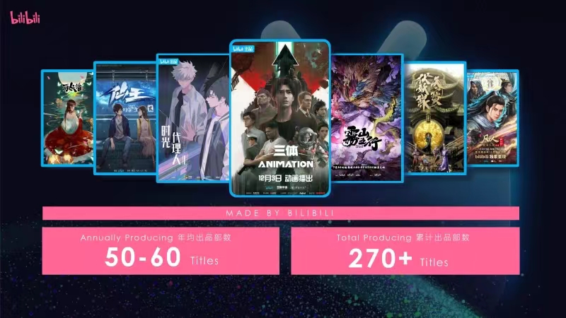 截至目前,哔哩哔哩自制动画作品已经在北美、欧洲、东南亚、日韩和俄罗斯等全球190多个国家和地区发行,登上了包括Netflix、Crunchyroll、VIKI、Laftel等海外主流平台。2023年,包括《时光代理人》在内的作品在亚洲、北美、欧洲等多地成功落地并举行首映礼,而且逐步实现了全球同步跟播。B站作品因主题及表达跨越了语言和文化差异障碍,受到广大海外观众的喜爱。