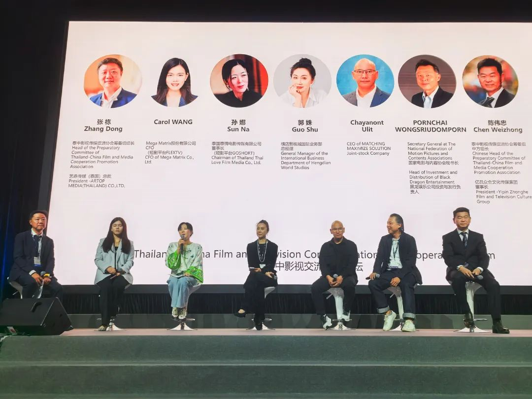 在论坛沙龙环节中,与会嘉宾围绕“泰中影视合作的机遇”展开深入讨论。Mega Matrix股份有限公司短剧平台FLEXTV CFO Carol WANG女士、泰国泰情电影传媒有限公司董事长孙娜女士、横店影视城国际业务部总经理郭姝女士、泰国MATCHING MAXIMIZE SOLUTION股份公司CEO MR Chayanont Ulit先生以及泰国电影与内容联合会秘书长、Black Dragon Entertainment有限公司总裁PORNCHAI WONGSRIUDOMPORN先生等,分别就泰国创作的便利性、文化差异与爆款作品、中国制作的发展趋势以及短剧出海等议题发表见解,并分享了中泰影视合作的成功经验与未来展望。