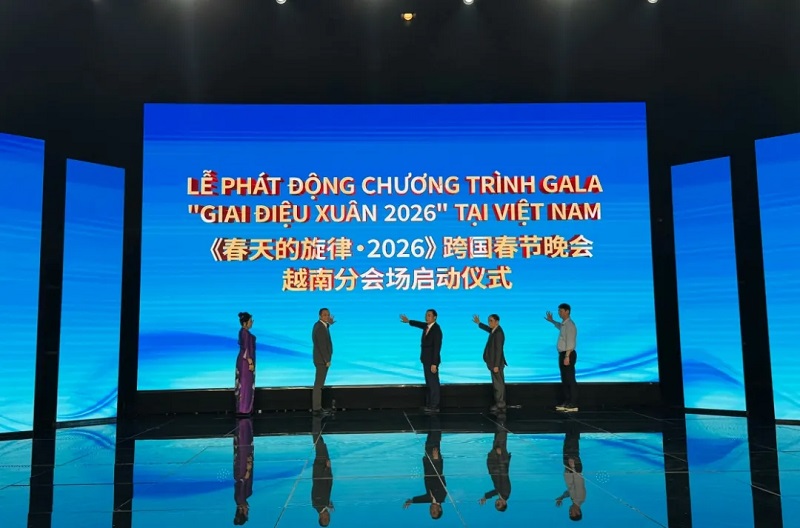 在越南歌手深情演唱的《我爱你中国》歌曲中,《春天的旋律•2026》跨国春节晚会越南分会场正式启动。