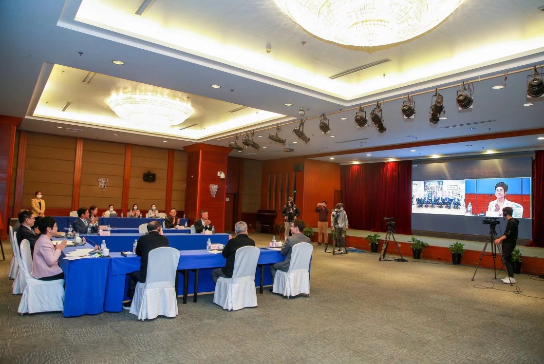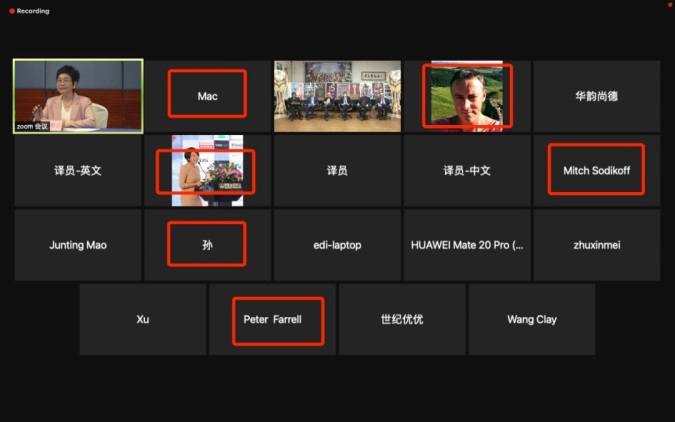 奥斯卡奖获奖作品《百万宝贝》的制片人安德鲁·摩根先生、华纳兄弟公司副总裁亚当·普雷瑟先生、美西编剧协会国际委员会负责人鲍勃·安德伍德先生、艾美奖和奥斯卡奖得主、著名导演、制片人理查德·安德森先生,以及中国电视剧制作产业协会会长、国家一级导演尤小刚先生、著名导演编剧制片人唐季礼先生、阿里文娱优酷海外运营与发行负责人周鹏先生、世纪优优(天津)文化传播股份有限公司董事长李福德先生等嘉宾,分别在洛杉矶和北京两个会场发言,介绍了后疫情时代中美两国影视产业发展现状,并就两国影视行业开展深度务实合作提出了对策建议。