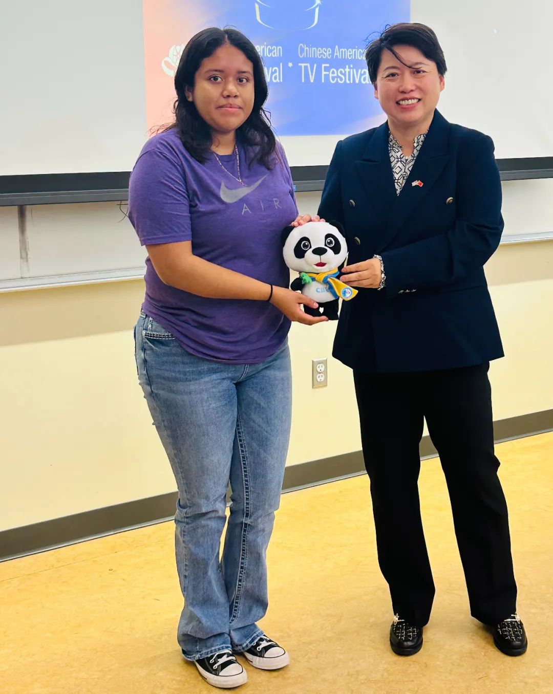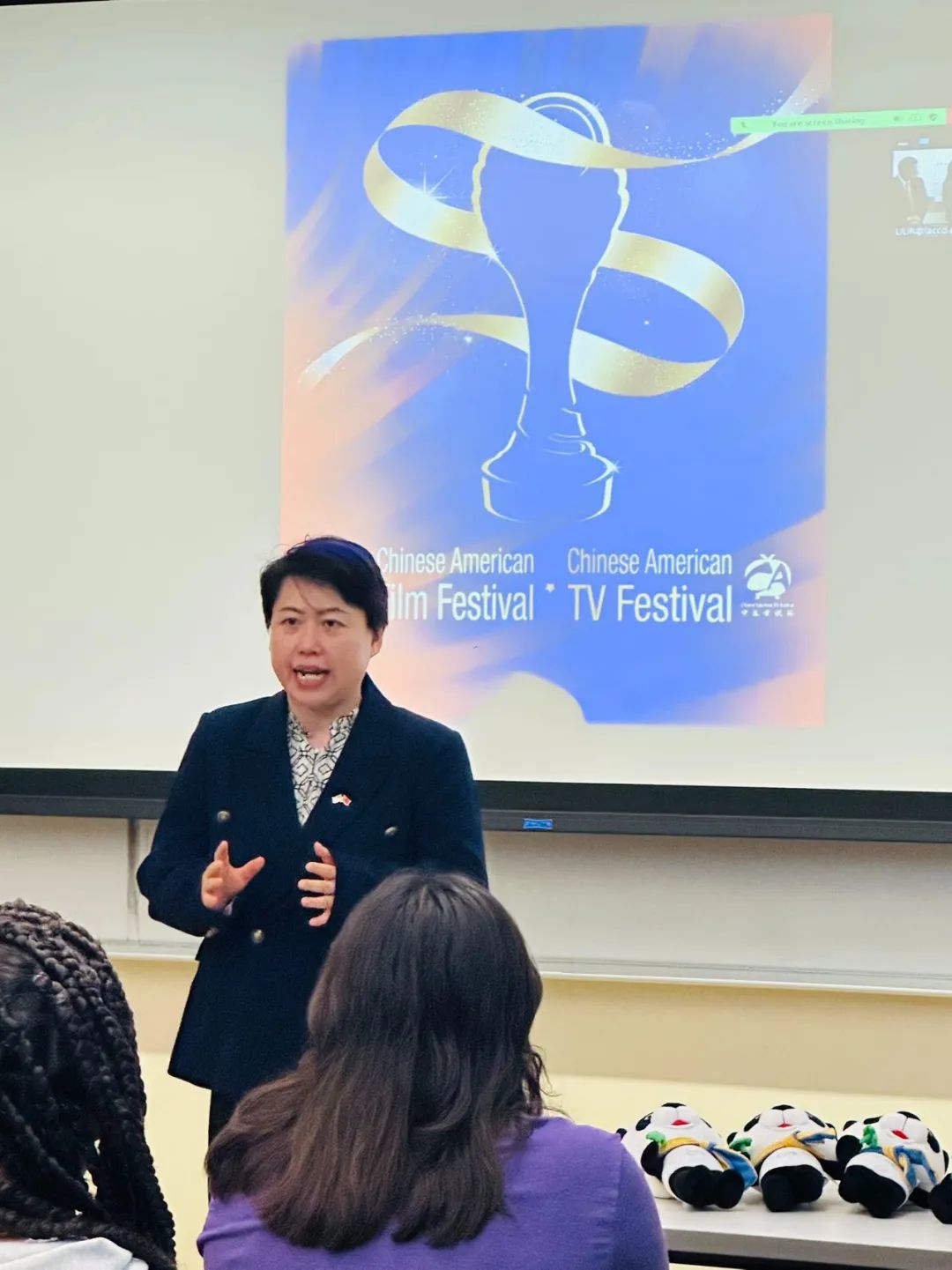 国宝大熊猫“花花”走进美国校园与美国青年人亲密接触,中国优秀视听作品系列展映东洛杉矶大学成功举行