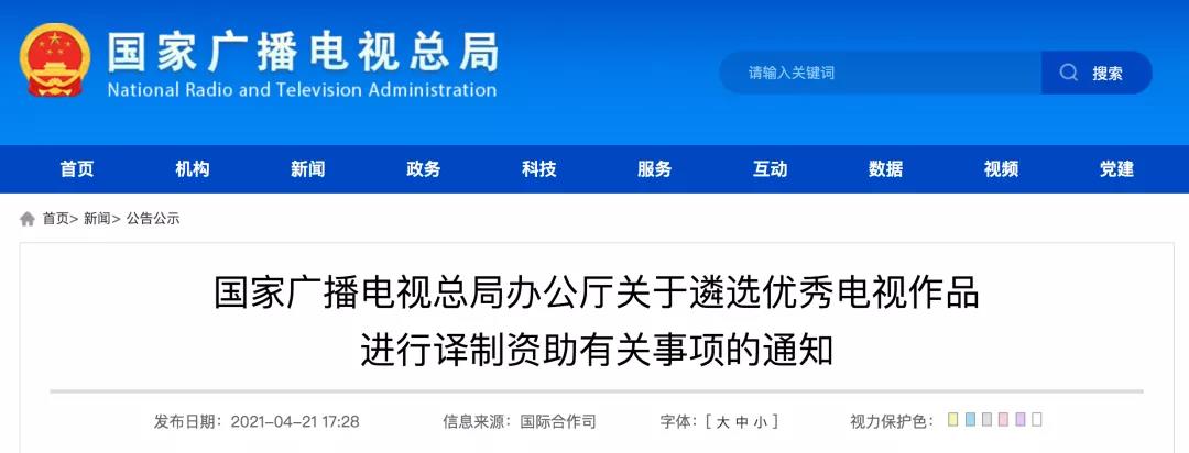 【发布】国家广播电视总局办公厅关于遴选优秀电视作品进行译制资助有关事项的通知