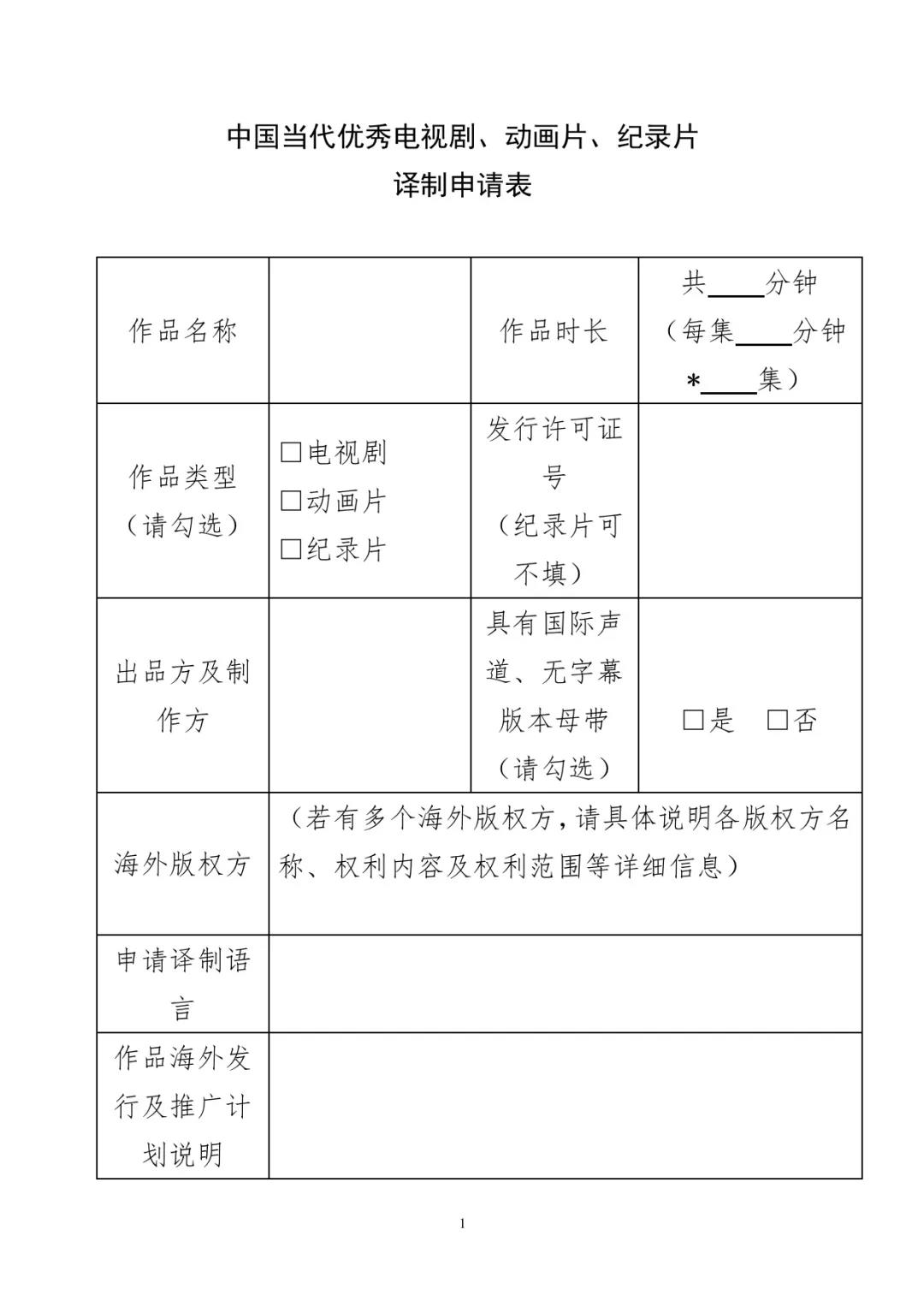 附件:中国当代优秀电视剧、动画片、纪录片译制申请表.doc