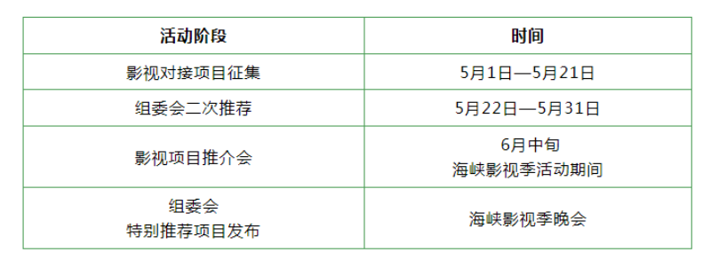 组委会提供参与项目推介的两名主创人员在海峡影视季活动中的食宿;