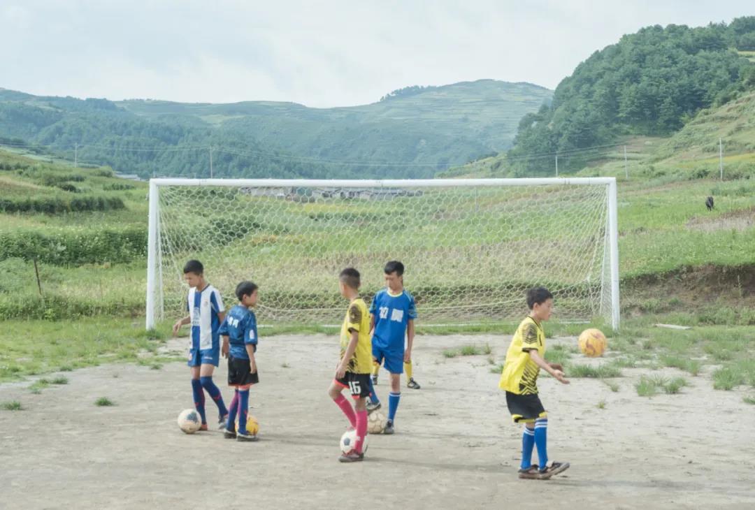 大山深处,树木丛生,却有这样一片绿茵场,一群孩子们仿佛不知疲惫地肆意奔跑。