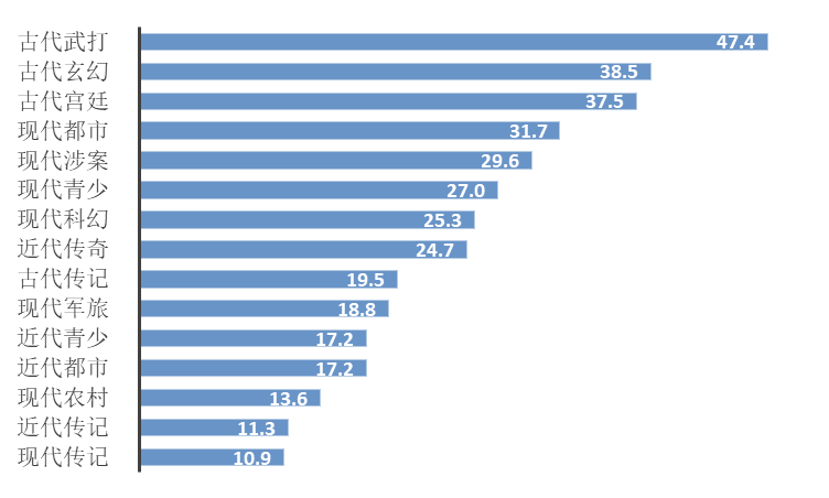 图4东南亚观众对中国剧集题材类型的偏好度(单位 %)